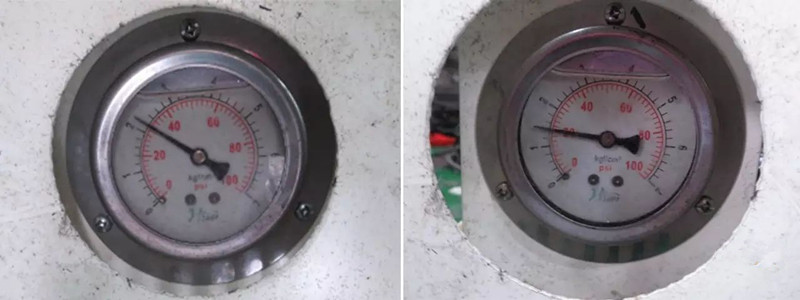 清洗前系統壓力為2.2 kg/cm2 清洗后系統壓力變為1.4 kg/cm2