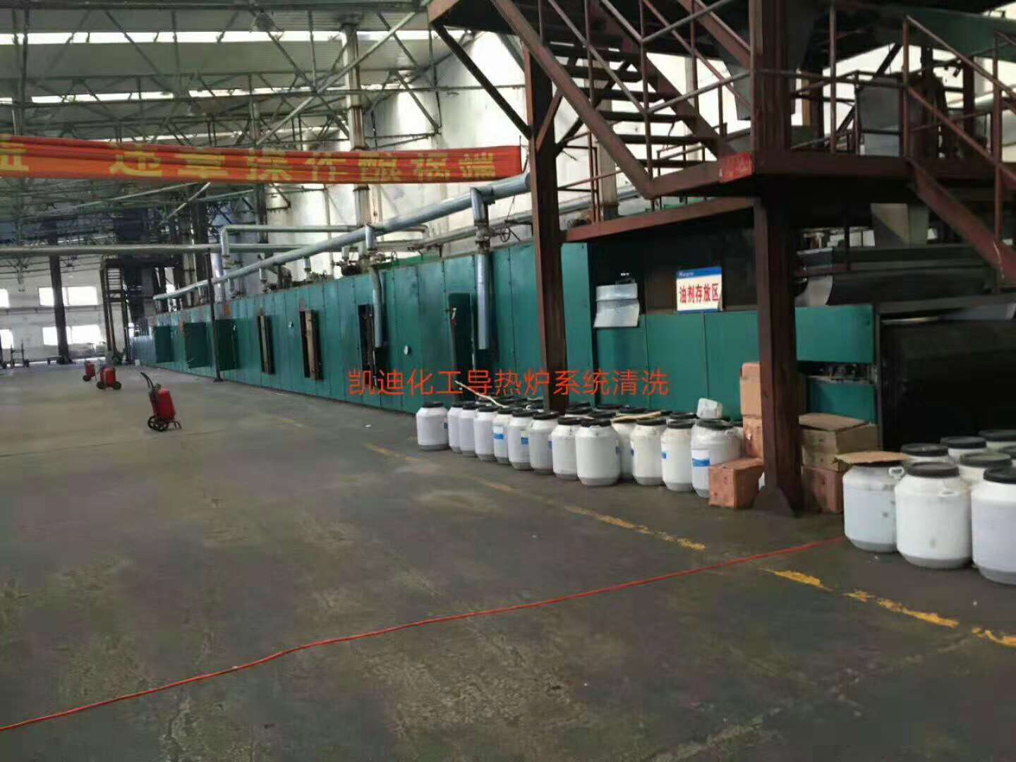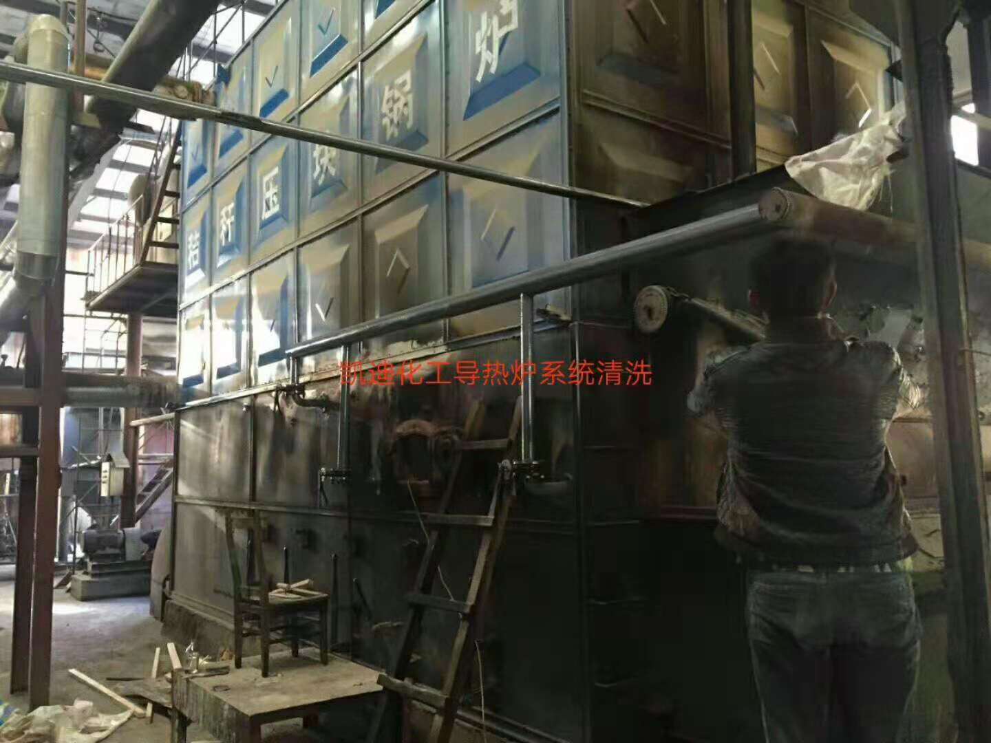 2018年10月19日,遼陽勝達化纖30噸導熱油爐系統整體在線清洗開始,使用藥劑為凱迪KD-L802高溫導熱油在線清洗劑